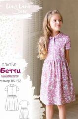 Детское платье с отрезной линией талии и юбкой со сборкой. Рукав втачной короткий. Круглый воротник, застежка на кнопки. Длина платья до колена.