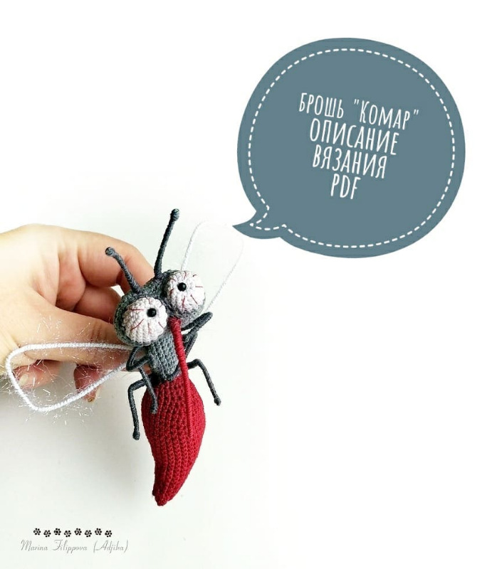 Размер броши не слишком маленький, поэтому следует иметь в виду, что при увеличении размера крючка комариха может получиться крупноватой.