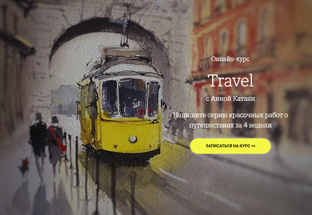 Пишем элемент городского пейзажа - замечательный желтый трамвайчик и поддерживаем сюжет старинной архитектурой города.