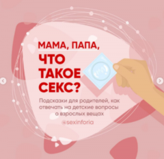Словарик «Мама, папа, что такое секс?» состоит из 118 терминов, которые относятся к теме половых органов, секса, зачатия, деторождения. Определения рассчитаны на взрослых, которые будут объяснять значение слов детям от 4 до 14 лет. В словарике также есть скрипт для разговора с ребенком 4-10 лет о сексе и полезные ссылки на видео.
