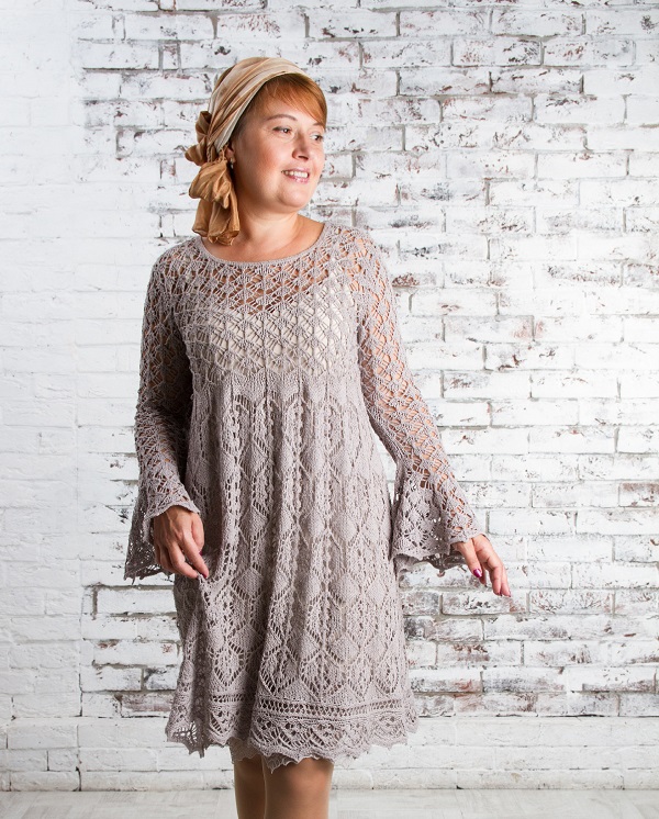 Плотность вязания: в квадрате 10х10 см ажурным узором «паучки» 16 п. и 24 р.; узором «японский ажур» 17 п. и 20 р.