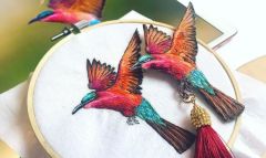 Вышивка щурки максимально натуралистичная, а потрясающие цветовые переходы выполнены двадцатью оттенками ниток