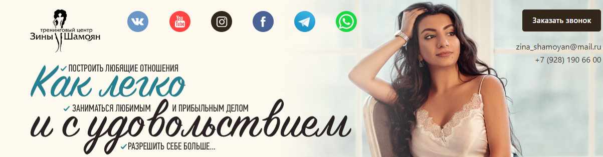 Зина Шамоян – психолог-терапевт, основатель психологического и детского центров, автор марафонов и курсов, которые помогли тысячам людей, ведет личные консультации с клиентами по всему миру.
