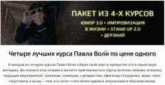 В каждом из четырех курсов Павел Воля собрал свой опыт и превратил его в пошаговую методику. Вы освоите всю теорию и начнете практиковаться. Курсы полезны любому человеку: ведущим мероприятий, тренерам, спикерам, сценаристам, офисному сотруднику, маме, папе, спортсмену и качку — тем, кто хочет стать более ярким и энергичным в обычной жизни.